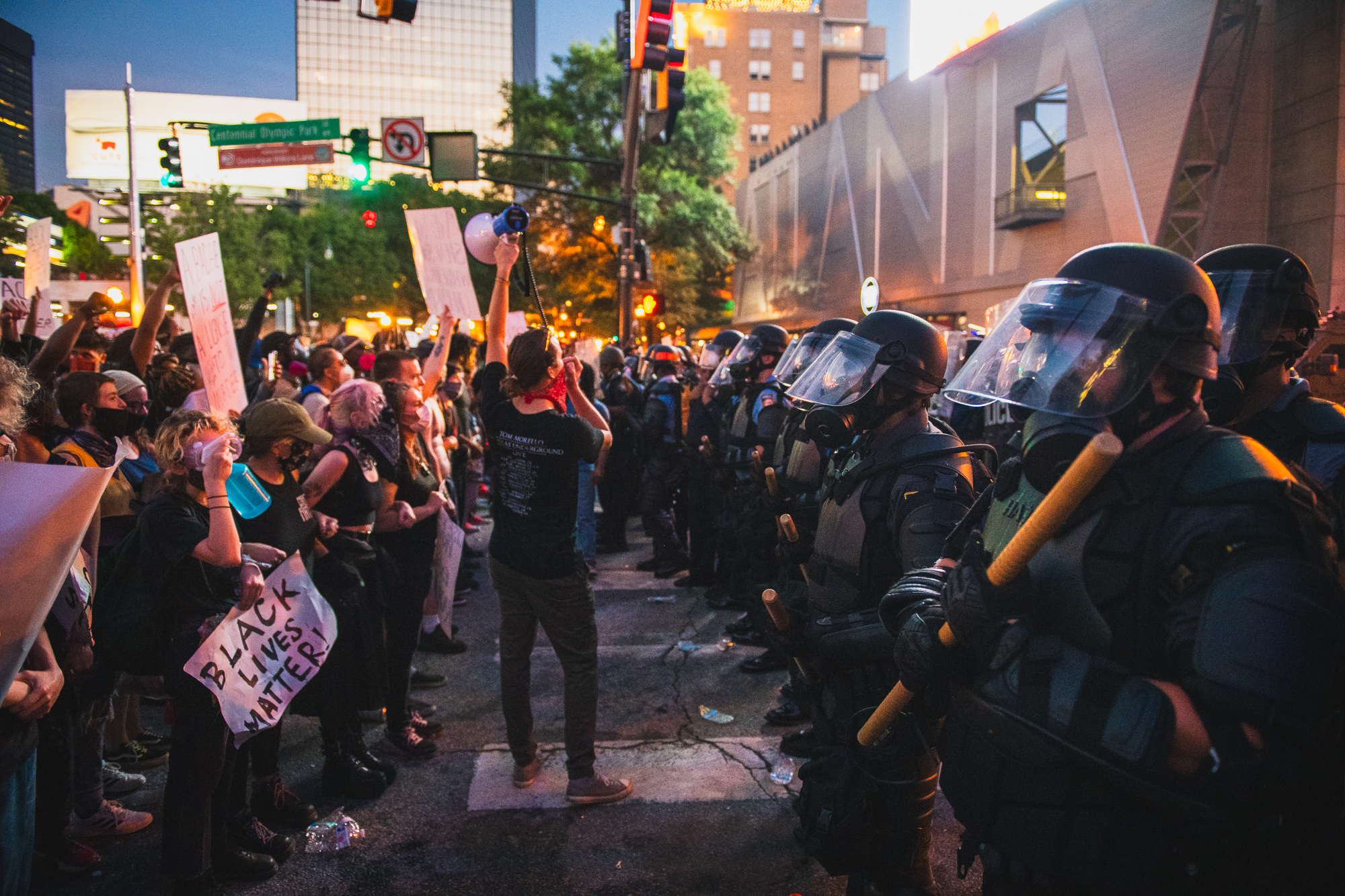 On May 29, 2020, a protest called “Justice for Us” occurred in downtown Atlanta. The protest was in response to the murders of George Floyd, Breonna Taylor, and Ahmaud Arbery. Protesters marched from Centennial Olympic Park to the Georgia State Capitol and back, chanting “No justice, no peace” and “I can’t breathe.”
